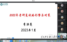 此次进行经验分享的四位同学分别是黄瑞潇、徐志豪、王妮妮和尚亚丽,均为我院2018级考取研究生的同学,四位同学主要在初试成绩及排名查询、联系导师、复试流程、复试科目准备、复试着装及答题语言技巧等方面做了具体、准确、实用的经验分享。李院长做了题为《2023年复试的形式与对策》的讲座,主要在2023年考研复试的形式、考研复试的政策、考研复试的主要形式和内容、考研复试成绩的使用和考研复试的应对策略等五个方面展开分析,嘱咐同学们态度上认真、心态上自信、行为上实干!王新芳副院长进行了总结发言。