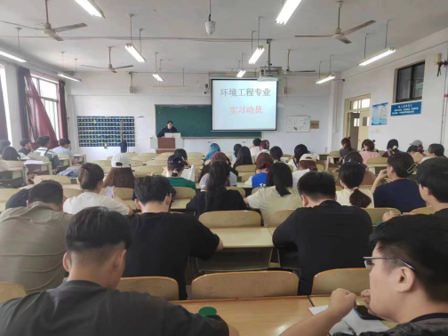 2023年5月8日至5月21日,2021级环境工程专业进行了环境工程原理课程设计实习。实习前,环境工程系组织了实习动员会(图1),将实习期间需要完成的任务和需要注意的事项向学生们进行了部署。