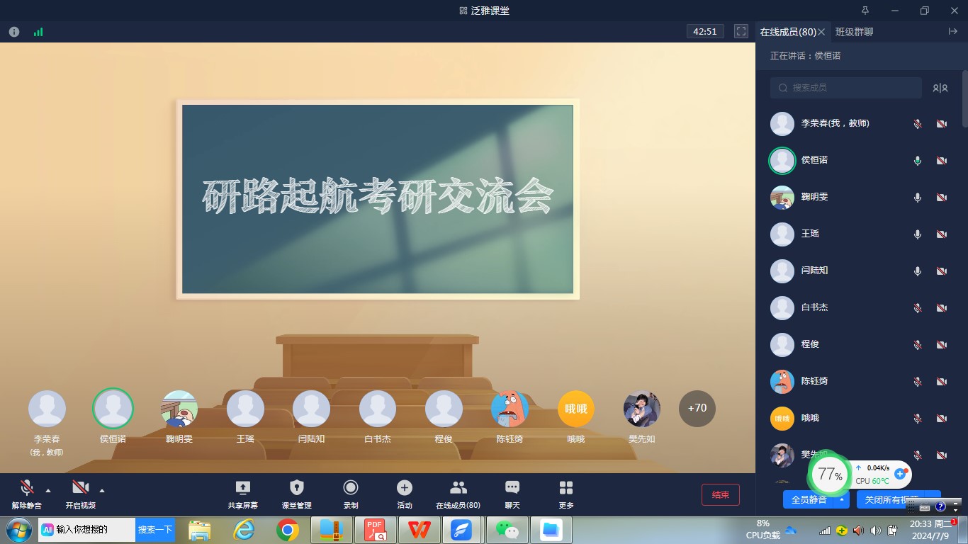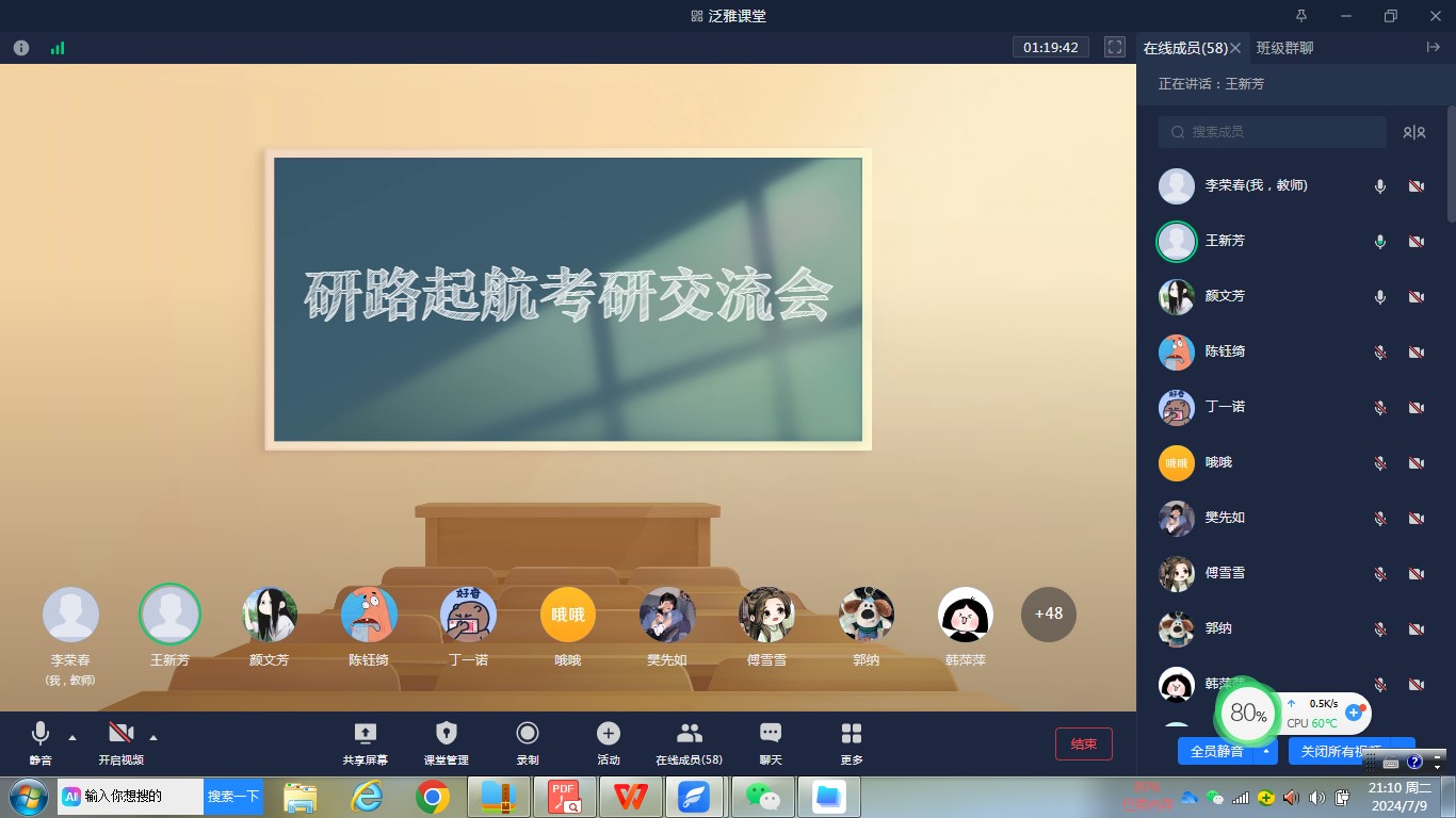 2024年7月9日,人人爽人人爽举行了2025届“研路起航”暑期考研备考线上经验分享会。参加会议的有人人爽人人爽院长、考研工作助理、受邀作报告的青年教师田关峰、2025届备考研究生考试的全体同学及受邀进行经验分享的2024届研究生上岸同学。