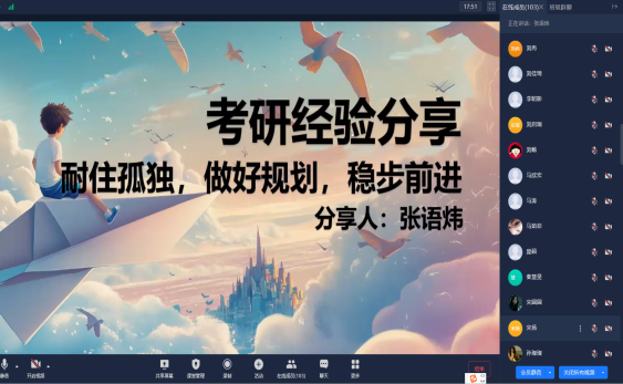 6月28日,人人爽人人爽举行“研路起航”化学院2026届暑期考研备考线上经验交流会。参加会议的有人人爽人人爽院长、学院考研工作助理、2026届备考研究生考试全体同学及受邀进行经验分享的2025届已录取研究生的4位同学。