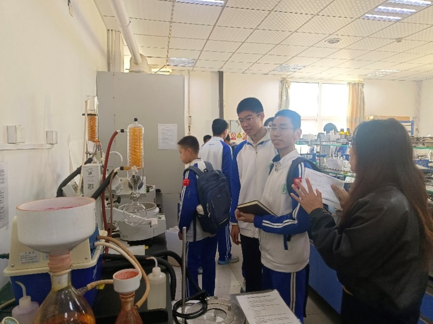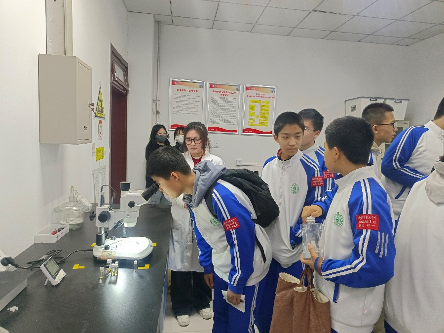 科研实验室中,各种精密的仪器设备和专业的实验装置引起了学生们极大的兴趣。学院的专业教师详细介绍了各种仪器的用途、实验的原理以及操作流程,并耐心解答了学生们提出的问题。