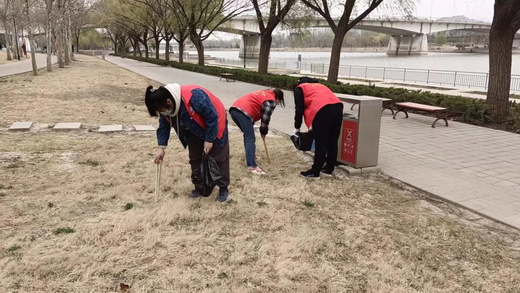 活动开展前,指导老师与社区负责人进行交流沟通,了解岔河两岸的基本情况,之后大家进入负责区开展清洁服务工作。二十余名师生志愿者积极发扬服务人民、助人为乐的雷锋精神,在指导老师划分的负责区域拿着垃圾钳、塑料袋等卫生工具,针对岔河两岸护堤草坪上的塑料袋、烟头、纸屑等杂物进行细致地清理。经过师生一上午的努力,岔河两岸面貌焕然一新,干净整洁的河岸公园在万物复苏的季节里显得更加生机盎然。活动结束后,大家在河边公园进行了合影留念。
