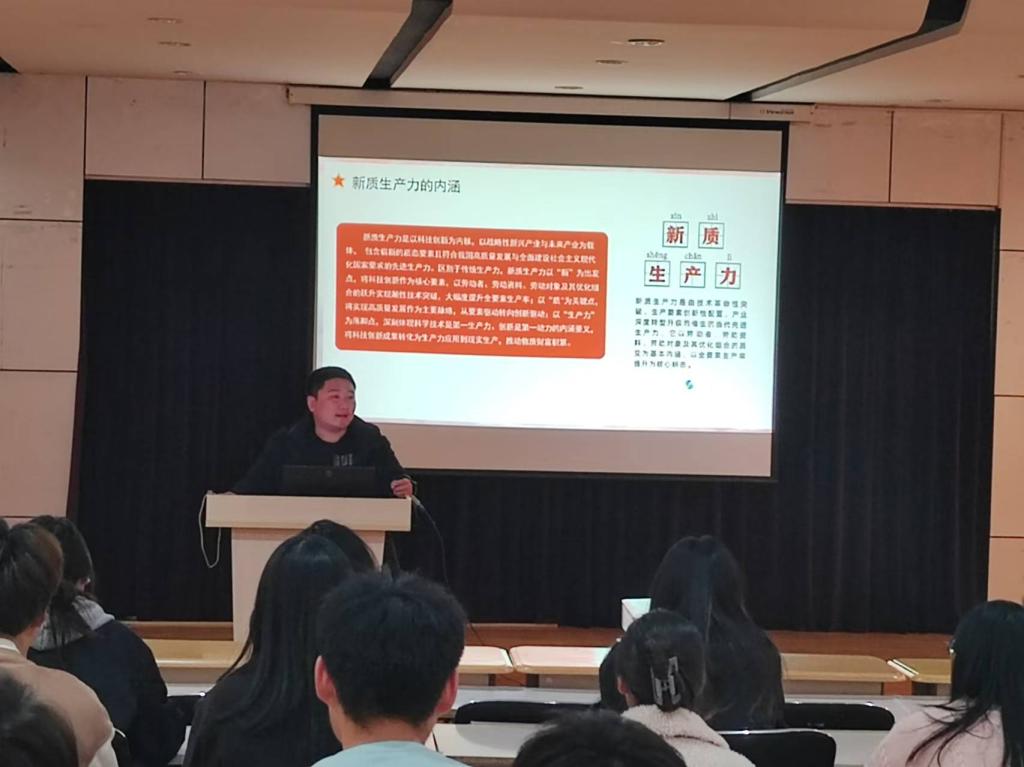 主讲人围绕“新质生产力时代:大学生就业指导”主题,对新质生产力的内涵、特征进行详细讲解,带领同学们了解新质生产力时代就业环境变化和职业规划的具体步骤,并给同学们普及大学生创业的一般流程,帮助大家确立目标,提升自身素质,加强自身思想道德建设,增强青年的就业能力。