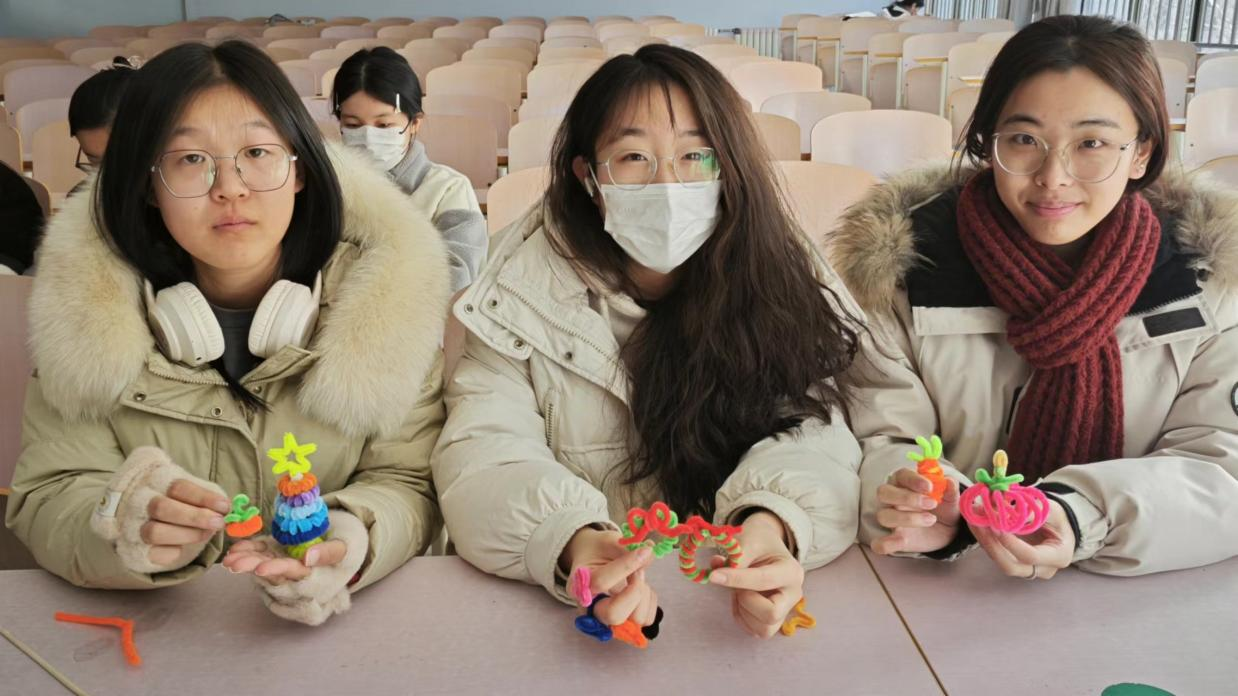 活动现场,五彩斑斓的扭扭棒在同学们手中巧妙变身。大家充分发挥想象力与创造力,将一根根扭扭棒弯曲、缠绕、拼接。从精致花朵到可爱玩偶,各种创意作品纷纷呈现。同学们专注投入,相互交流技巧与创意灵感,欢声笑语不断。