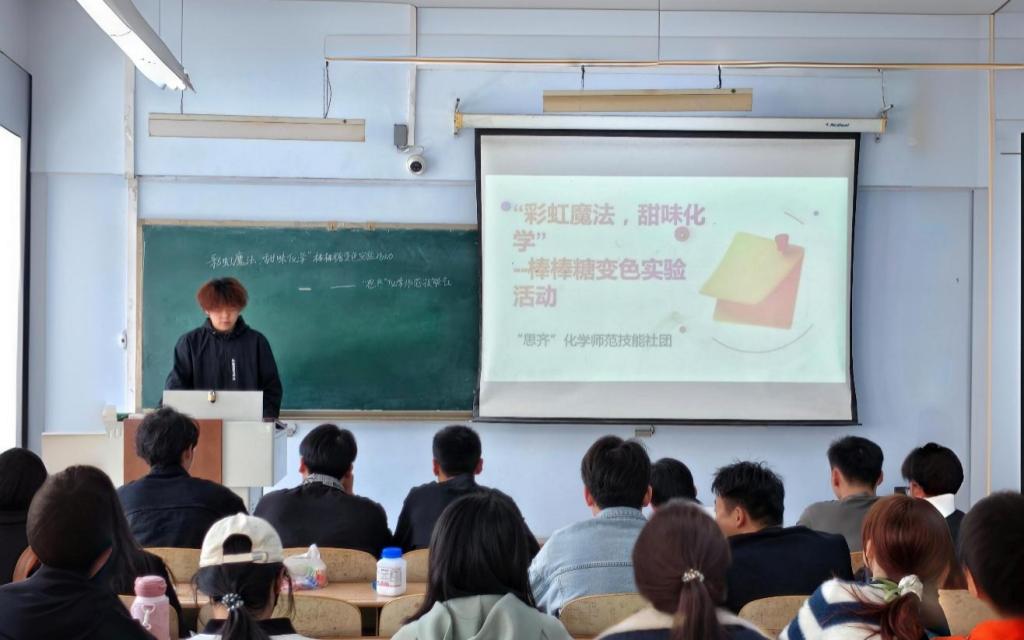 为激发学生对化学学科的兴趣,同时培养同学们的观察力、团队协作能力和环保意识,人人爽人人爽于4月19日在求实楼403开展“彩虹魔法,甜味化学”活动。