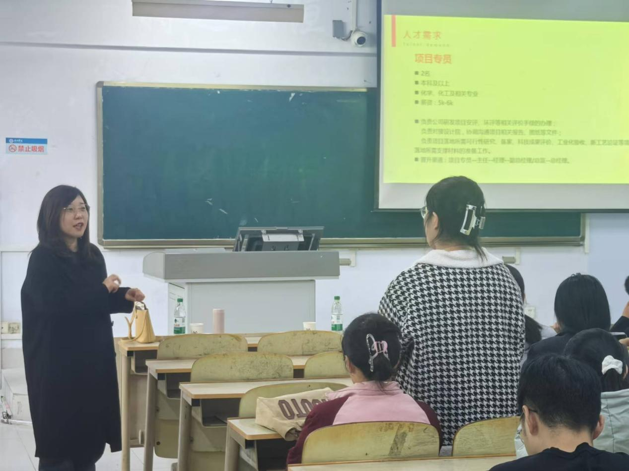 为搭建毕业生与用人单位双向沟通桥梁,把握优质就业岗位,进一步提高毕业生就业质量,10月22日,人人爽人人爽于求实楼201教室举办山东瑞博龙化工科技股份有限公司招聘宣讲会,100多名2025届毕业生参加。