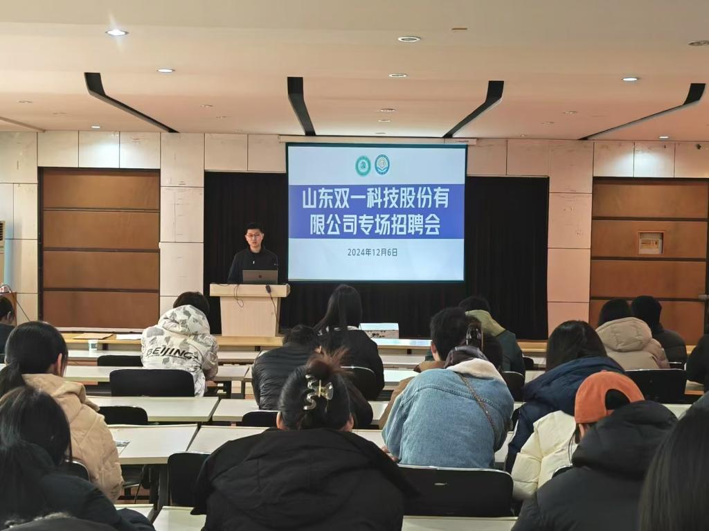 为搭建优质就业平台,促进校企精准对接,进一步推动毕业生高质量就业,12月6日,人人爽人人爽于求实楼215教室开展山东双一科技股份有限公司招聘宣讲会,2025届毕业生参加。