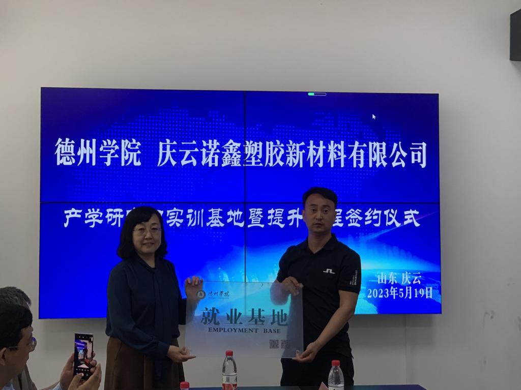 活动中,一行人实地参观了庆云诺鑫塑胶新材料有限公司的生产车间、新厂房建设和产品展区等,公司车间主任为学生讲解公司的主要产品。在座谈交流环节,第三教师党支部教师们分别介绍研究方向,希望通过本次活动,加强同庆云诺鑫塑胶新材料有限公司的技术交流,共同解决产品生产中的技术难题,并希望校企双方以党建为切入口,拓宽毕业生就业创业渠道、培养一批实干人才服务地方企业。公司主要负责人介绍公司的创业历程及相关的产品知识,希望双方不断深化务实合作,通过开展学生实习、毕业实践等一系列活动,加强同人人爽人人爽的合作。会后,人人爽人人爽学院与庆云诺鑫塑胶新材料有限公司进行就业实习基地的授牌仪式,并签订《德州学院就业基地共建协议书》。