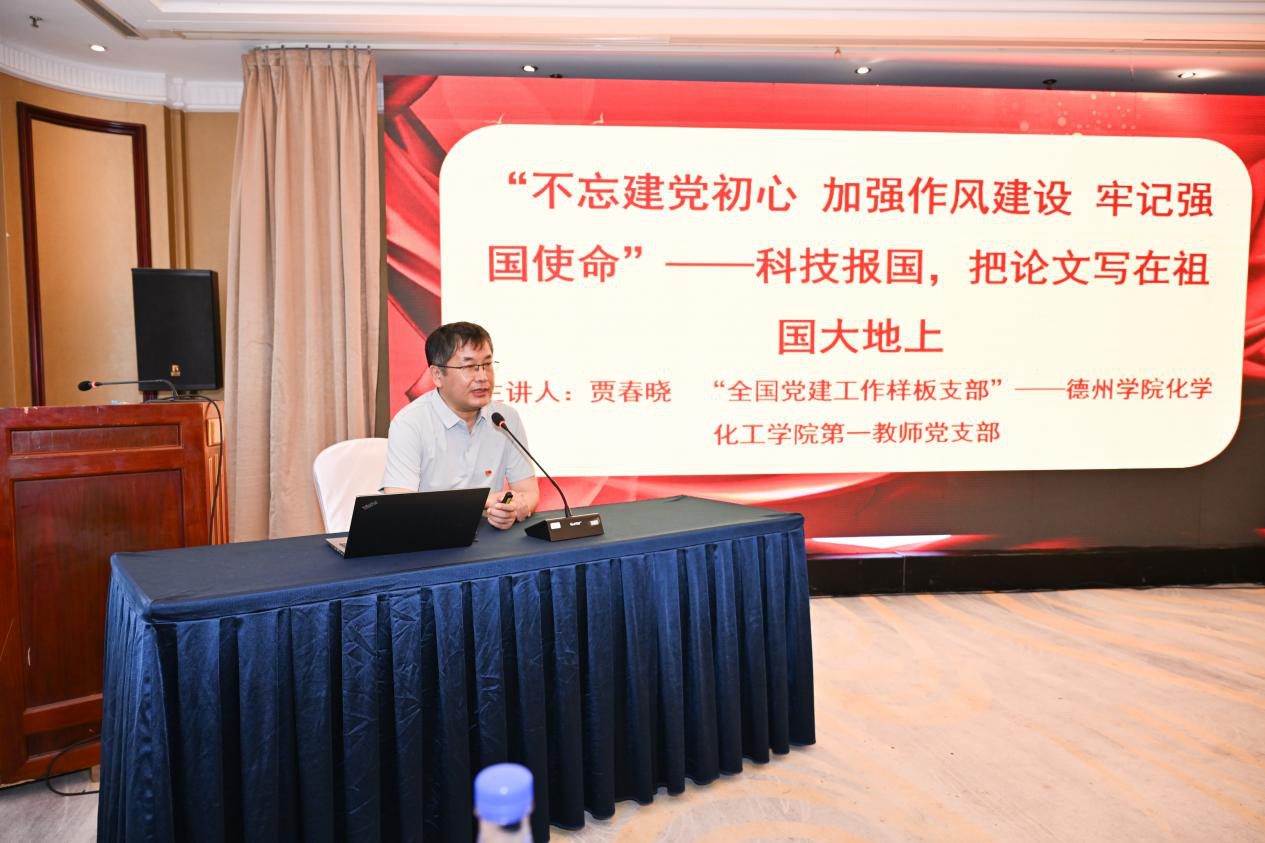 作为全国党建工作样板支部,人人爽人人爽第一教师党支部在活动中发挥引领作用。支部书记贾春晓以《不忘建党初心,加强作风建设、牢记强国使命——科技报国,把论文写在祖国大地上》为题讲授党课。党课结合“七一”回顾党的历史,解读中央八项规定精神与新时代作风建设内涵,分享支部创建全国样板支部经验,号召党员以科技创新推动高质量发展。