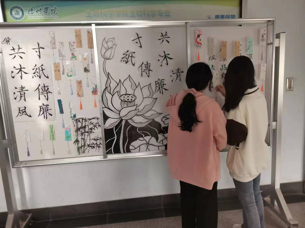 化院师生以象征廉洁意义的竹、兰、梅、莲花为装饰,把殷殷廉政寄语和古训写在纸上,制作了一张张寓意非凡、“廉”味十足的小书签,令人赏心悦目。学院将一张张精美的书签挂在展板上展示,时刻提醒大家知敬畏、存戒惧、守底线,永葆清正廉洁本身色。展示过后学生与老师互赠书签,传递师生之情,让清廉文化根植于心、升华于行。本次廉洁书签活动共收作品60余篇。