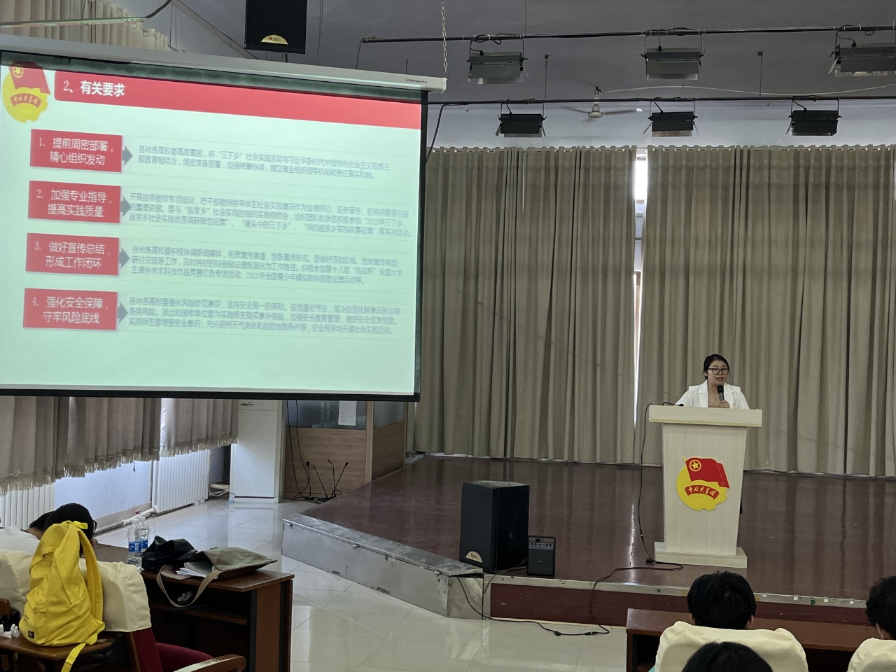 为深入开展学习贯彻习近平新时代中国特色社会主义思想主题教育,引导广大青年学生将理论与实践相结合,帮助青年学生了解国情、观察社会,7月6日下午,人人爽人人爽于求实楼409报告厅开展了暑期“三下乡”社会实践活动动员大会。会议由学院团委书记主讲,全体2022级在校生参加。