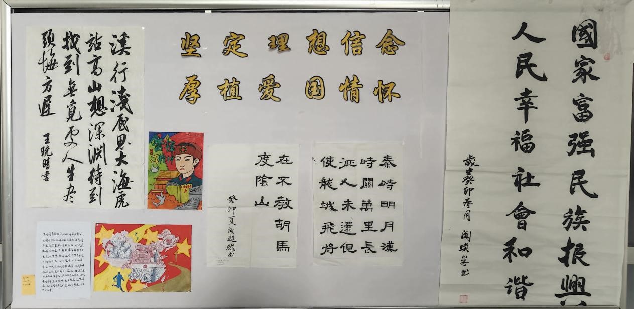 这次书画作品展自启动征集以来,得到了同学们的积极响应,大家精心创作、踊跃投稿。作品涵盖软笔书法、硬笔书法、绘画等形式,这些作品或是描绘雷锋精神,或是画出祖国盛景,或是抒发对伟大祖国的热爱与祝福,以书言志、以画寄情,讴歌党的丰功伟绩,展示祖国的大好河山。