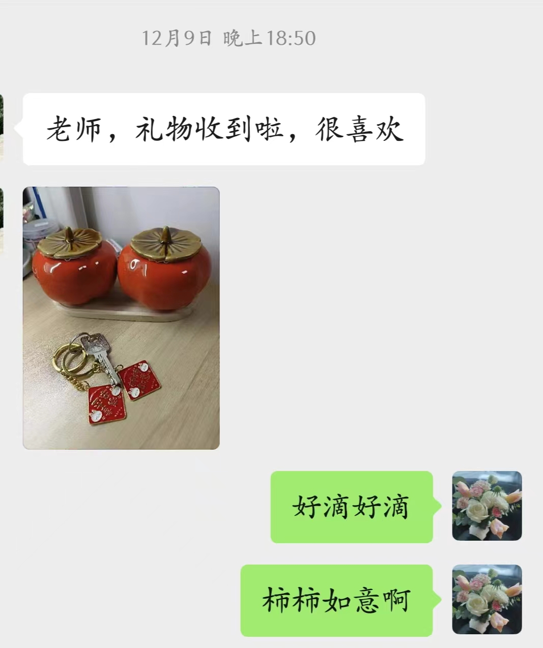 老师们通过电话、微信等途径联系待就业学生,了解当前就业情况,询问遇到的问题,并提供解决方方法,鼓励学生要树立信心,取长补短,奋发进取,引导学生将个人价值实现与社会需要想结合,将专业特长与行业需要相结合,在实现个人价值的基础上为社会做更大贡献。最后,为学生送去一份“柿子”礼物,祝福每一位毕业生能够事事如意,平安顺遂。