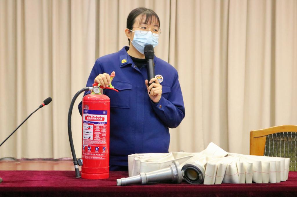 讲解员讲解了最近消防安全形势,围绕宿舍、实验室等重点场所,讲解了消防安全知识、火灾防范、火场逃生术、消防应急操作技能和处置流程等,分析了学生公寓消防安全事故真实案例,使学生深刻认识火灾的危害性和消防安全的极端重要性。讲解员还现场展示了灭火器、消火栓与水带等常见消防器材的正确使用操作步骤,将理论知识与实践操作相结合,为学生上了一堂生动的生命安全教育课。