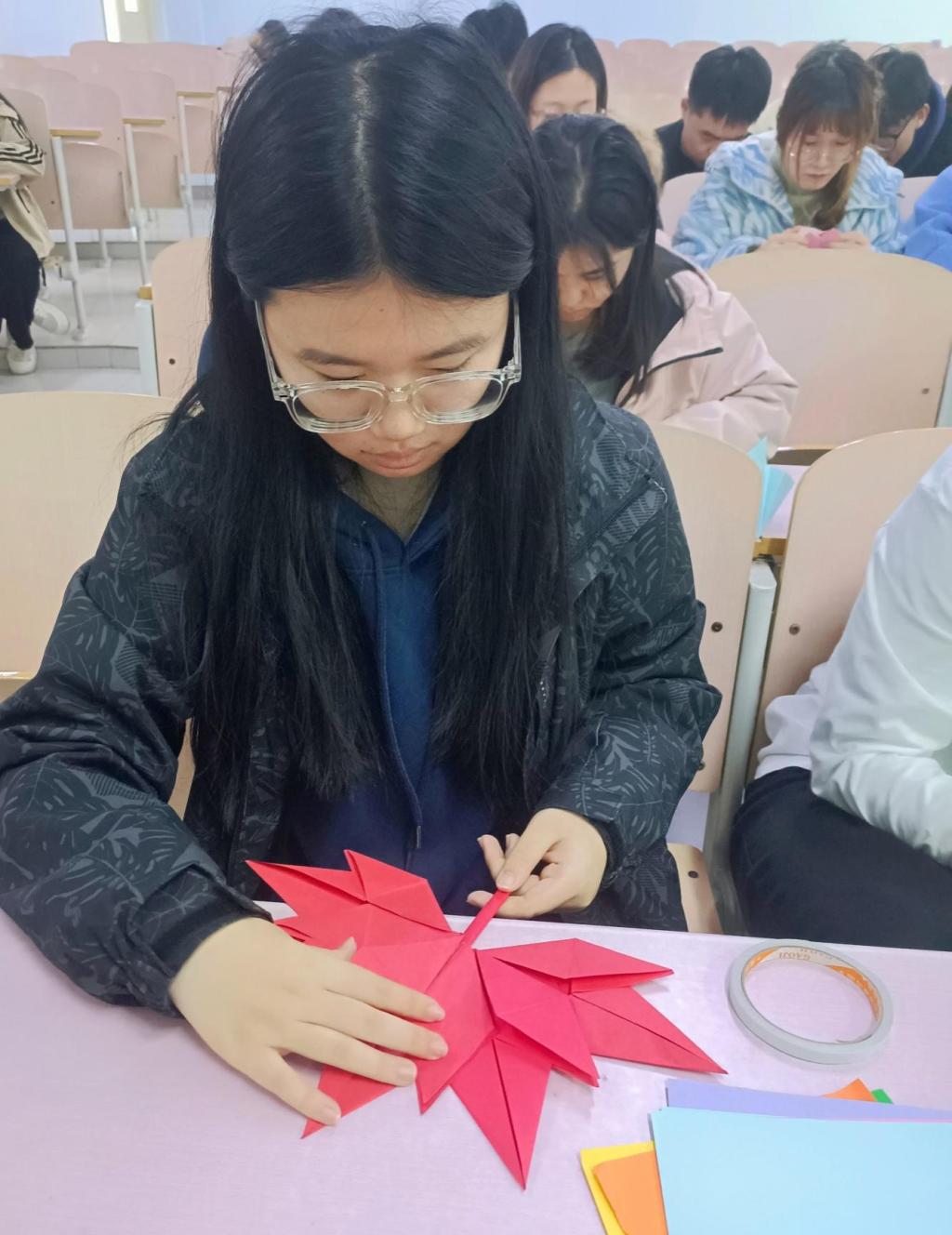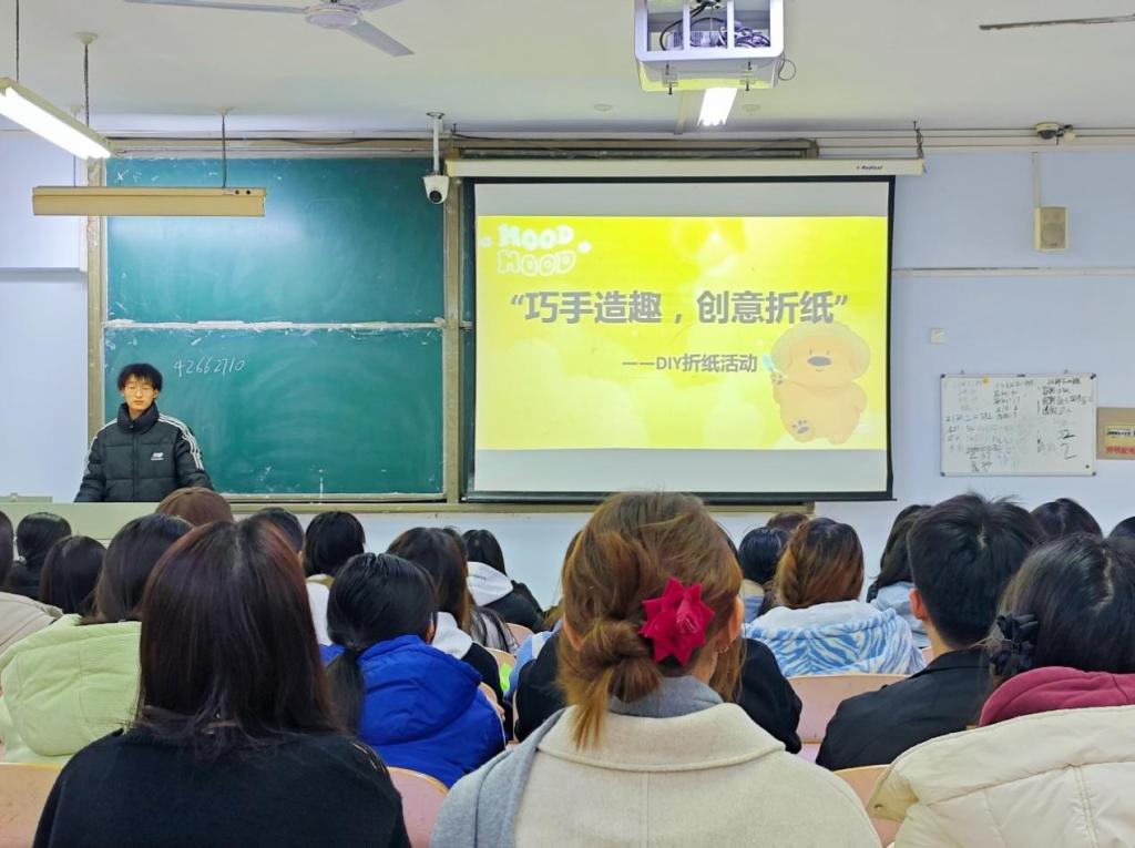 活动开始前,负责人向大家介绍了折纸艺术的魅力,为同学们展示了许多精美的作品图片,并现场演示折纸的操作技巧。随后,大家纷纷拿起彩纸认真按照折纸步骤和操作要点进行剪切、对折、翻折、粘贴。很快,一件件精美的折纸作品呈现在同学们眼前。在大家的积极参与下,现场气氛热烈。