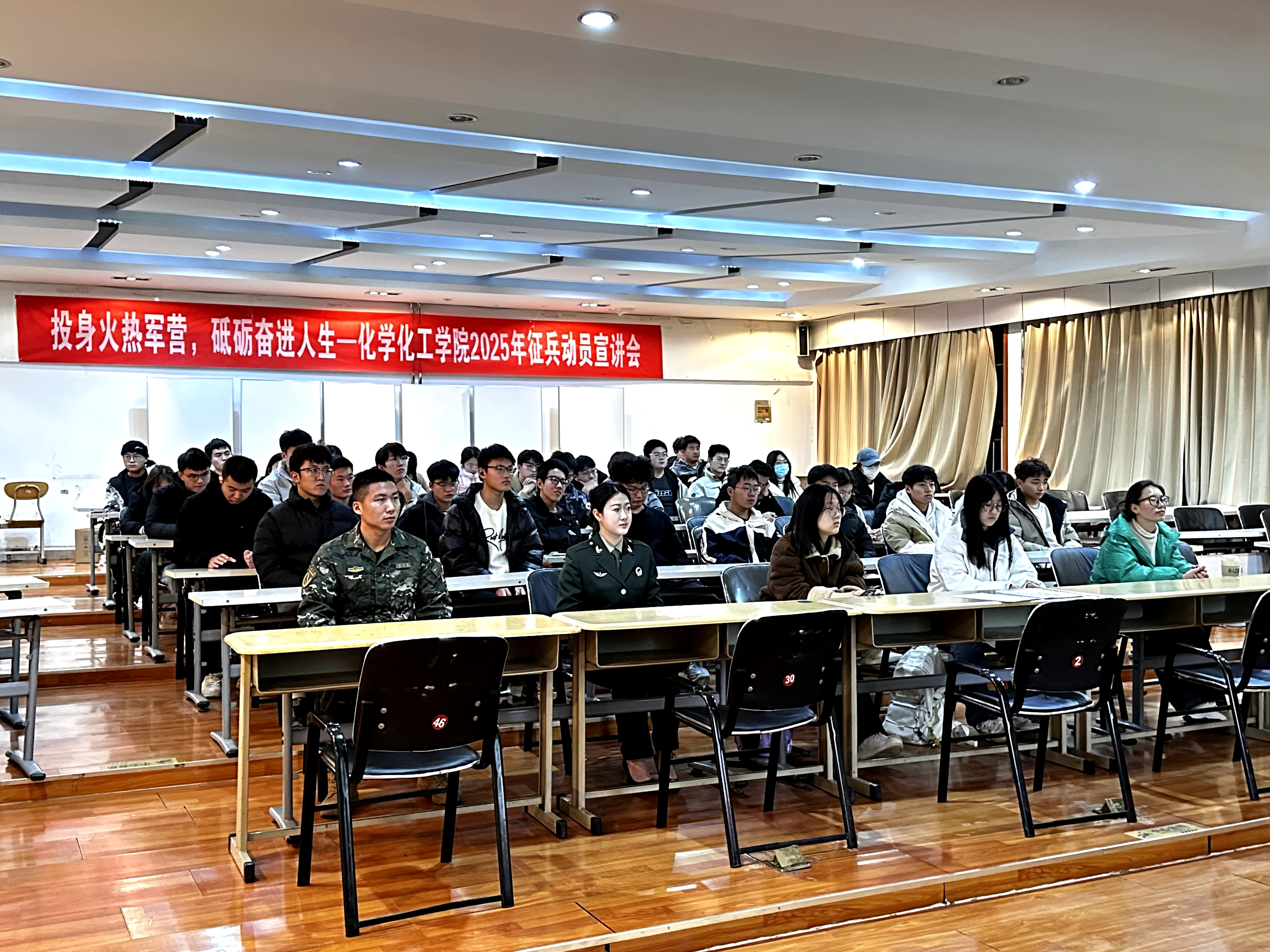 会上,老师对2025年的征兵工作进行了讲解,鼓励同学们投身军营、报效祖国。大学生国防教育协会负责人详细解读了当前的征兵政策、入伍条件、报名程序以及相关待遇等内容。随后,优秀退役大学生代表讲述了在部队中难忘经历和收获,鼓励同学们积极响应国家号召踊跃报名参军。他们认为部队的经历不仅让他们得到了淬炼,还锤炼了他们的品格和意志。最后,主讲同学跟参会同学们展开交流,会后对有意愿同学进行了现场报名指导。