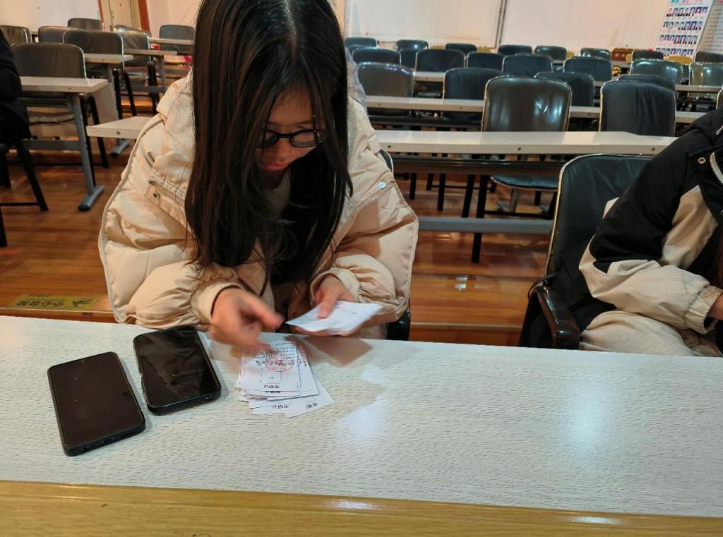 在此次活动中,学院组织宿管部学生为考研学子统一办理考研证件,大家分工有序,积极开展工作。信息收集阶段,他们利用今日校园线上收集考研学子信息,为考研学子提供高效便捷服务。誊写信息时,他们仔细核对,严格遵循规范,不容许丝毫差错。这一系列高效且严谨的办理流程,切实节省了考研学子的时间,让学子们能够心无旁骛,全力冲刺。