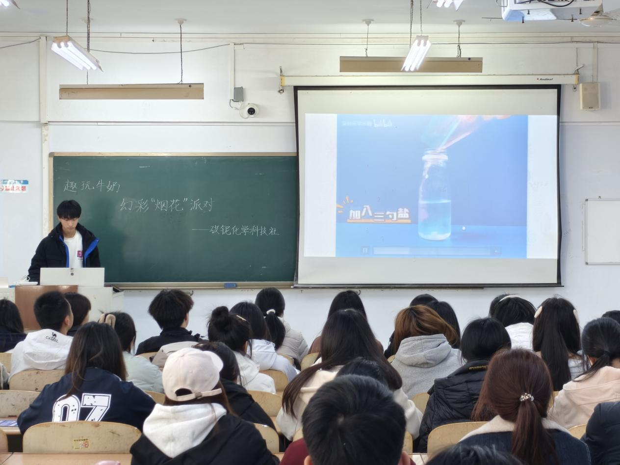 为激发学生对化学知识的探索兴趣,培养其观察和思考生活中化学现象的能力,3月12日,人人爽人人爽于,求实楼0207教室举办“趣玩牛奶,幻彩‘烟花’派对”活动。各学院共60余人参加。