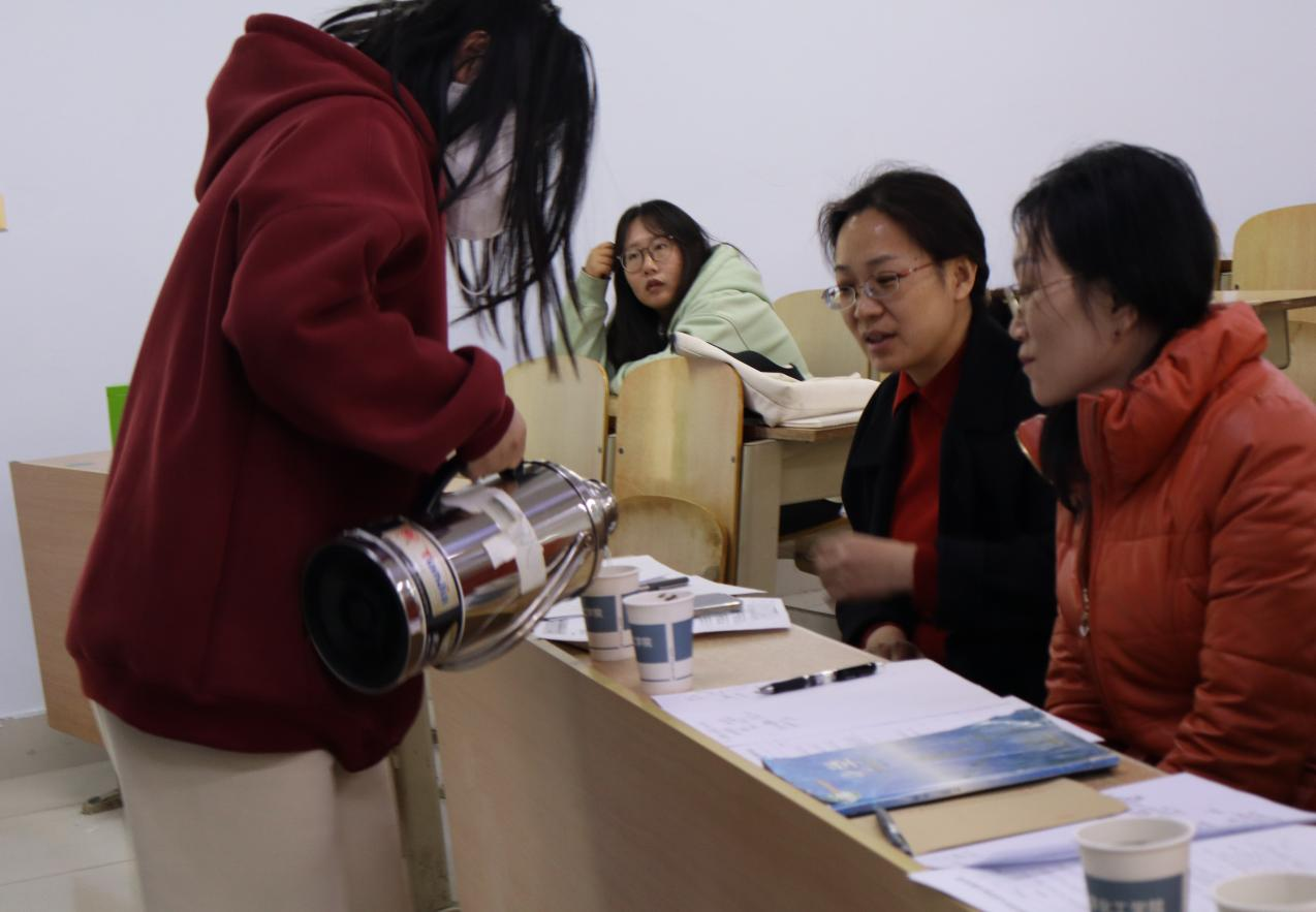 活动期间,志愿者团队分工协作,全程保障赛事各环节有序运转。备考室内,志愿者高效组织考生抽签并妥善保管通讯设备,严格维护备考纪律;比赛现场,计时员精准把控选手展示时长,通过醒目提示牌确保赛程公平透明;评委席旁,志愿者快速收集评委选票并细致核对数据,为成绩统计提供精准支持。此外,影像组多角度记录选手授课风采、评委专业点评及现场热烈氛围,留存赛事珍贵瞬间。