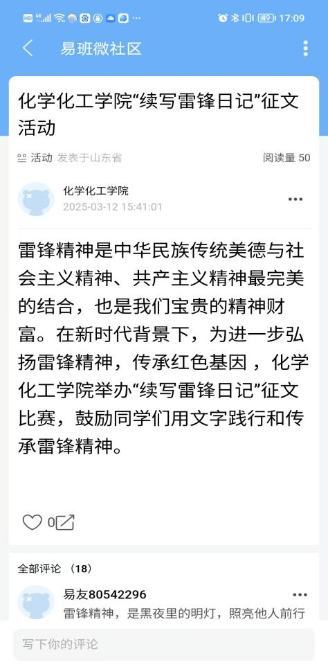此次活动通过易班APP平台举办,面向人人爽人人爽全体学生开展。很多同学分享了自己对于雷锋精神的学习感悟和亲身实践,很多同学利用课余时间从事志愿服务活动,这些行为体现了雷锋精神对大学生思想和行为的正向激励作用。