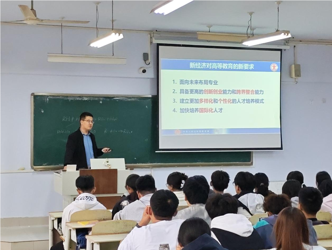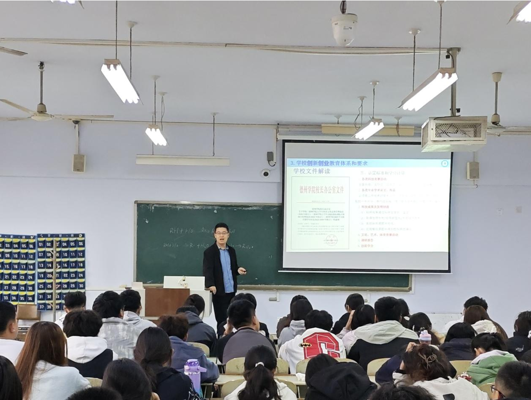 讲座中,学院副院长院长紧扣国家经济发展战略对专业型人才的迫切需求,深入剖析大学生创新创业规划的背景与意义,解读当前大学生创新创业的新形势,结合政策导向与行业趋势,让新生清晰把握当下创新创业的机遇与挑战;并系统介绍学校创新创业教育体系及具体要求,涵盖课程设置、实践平台、扶持政策等内容。学院双创工作负责人为新生梳理大学四年的阶段性目标与发展路径,引导新生将创新精神培养、社会责任感提升融入日常学习生活。