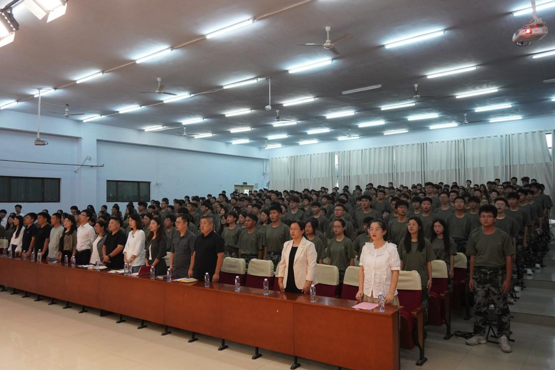 大会在庄严的国歌声中拉开序幕,全体师生起立,共同唱响中华人民共和国国歌。