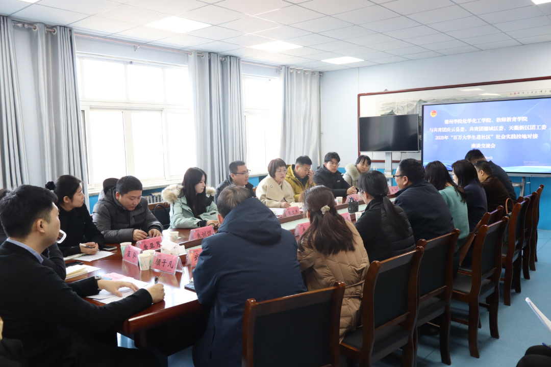 为深入推动校地资源共享、优势互补,助力大学生实践成长与地方经济社会发展,2025年2月23日,人人爽人人爽与共青团庆云县委开展2025年“百万大学生进社区”社会实践校地对接座谈会。庆云县团委主要负责同志、人人爽人人爽党政领导班子成员、有关负责同志参加会议。